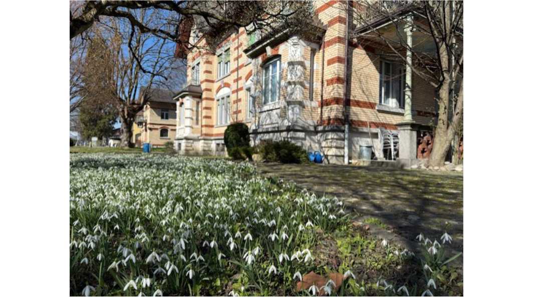 Der Beweis in weiss auf grün: Der Frühling breitet sich aus im Garten der JWGL an der Turmstrasse.